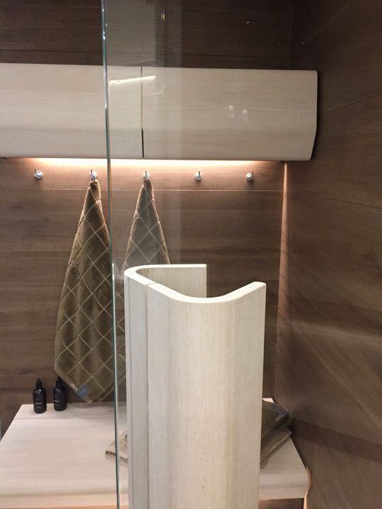 Oheistuotteiden valmistusmateriaali on koivuviilu ja pintaviiluvaihtoehtoja on kolme. Lisäksi tarjoamme viisi erilaista sävytysvaihtoehtoa. Samat sävyt ovat tarjolla myös muissa TAIVE-saunatuotteissa, joten voit luoda tilaan yhtenäisen ja viimeistellyn ilmeen.